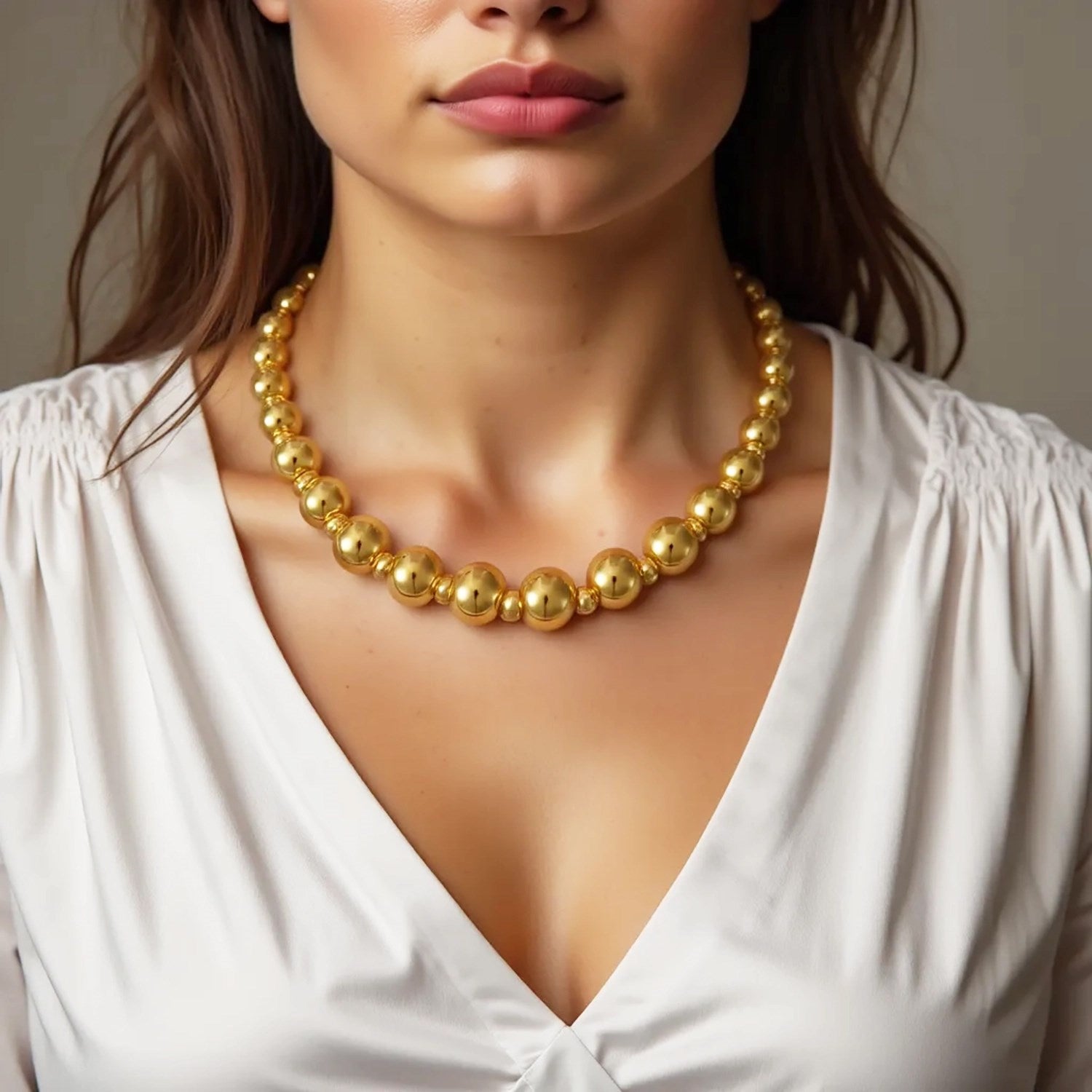 Featuring a graduated 9mm-2.6mm arrangement of polished 14k yellow gold beads with a warm, radiant finish, this necklace redefines the timeless charm of classic designs. The smooth transition between bead sizes adds fluidity and grace, making it a versatile and elegant accessory that elevates any look with effortless sophistication.