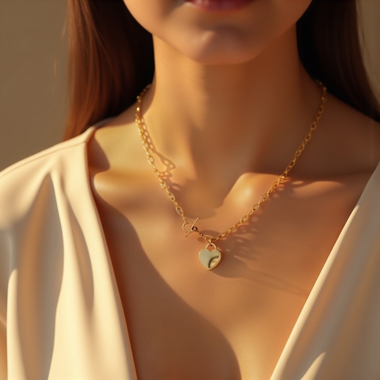 Toggle Necklace with Heart Charm in 14k Yellow Gold